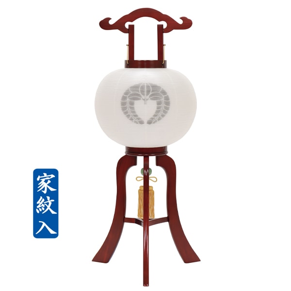 【送料無料】家紋入盆提灯 壺型(御所提灯) 蒔絵 絹張り 電池式LED 吊り金具付き