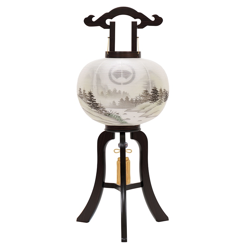 【送料無料】家紋入盆提灯 大内行灯 彩雲の里 11号~12号 絹二重