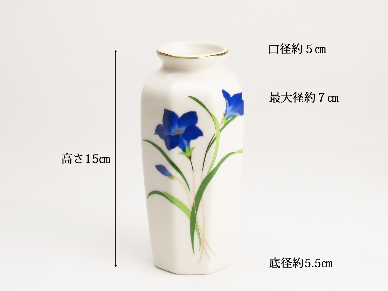 | サイズ | 高さ15cm×口径5cm、最大径7cm、底径5.5cm |