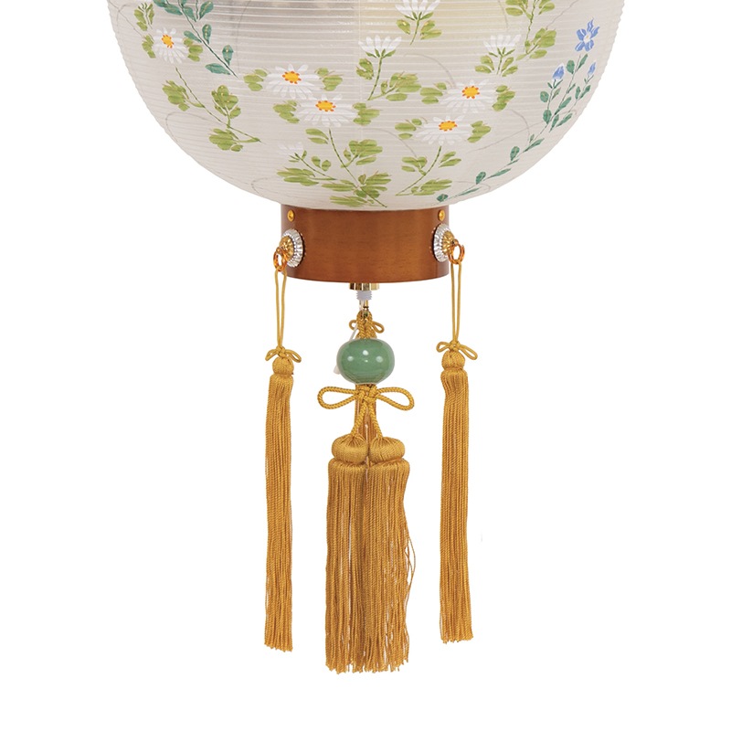 【送料無料】吊り提灯 御殿丸 蒔絵 11号 絹張り 電池式LED 吊り金具付き