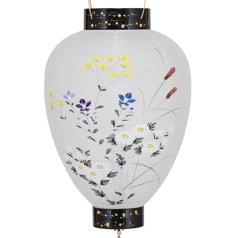 【送料無料】吊り提灯 壺型(御所提灯) 蒔絵 和紙張り 電池式LED 吊り金具付き