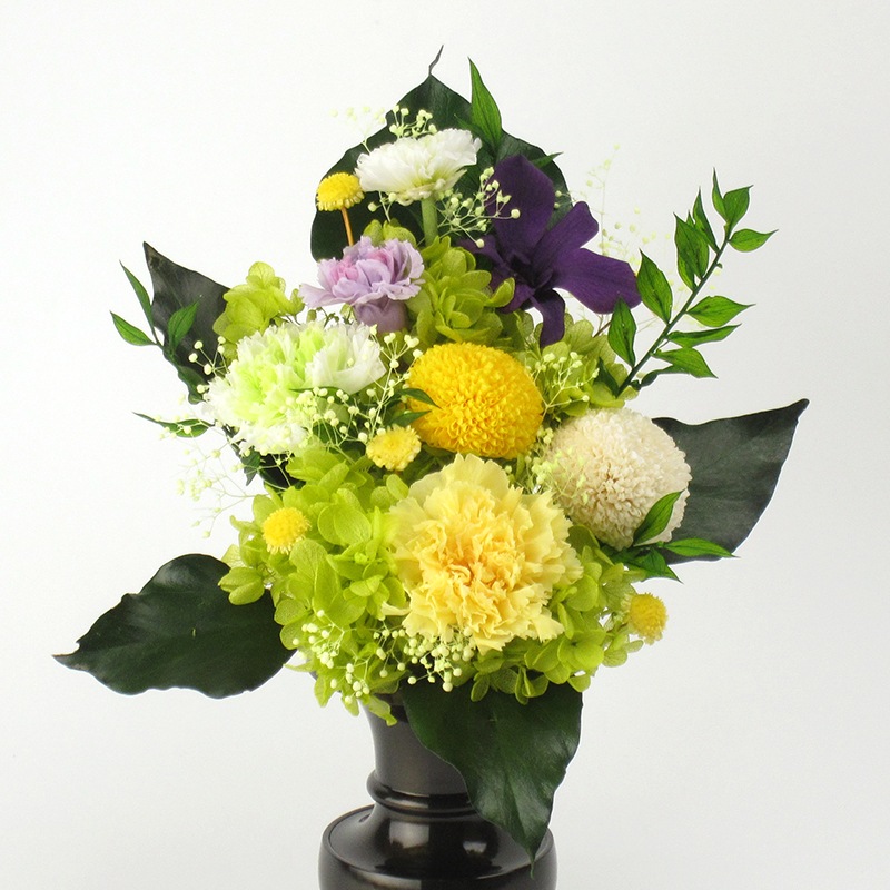 【送料無料】プリザーブドフラワー仏花 3.5~4寸花立用 ピンク/パープル/ホワイト/グリーン