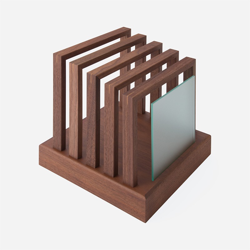 素材はウォルナットやヒバなどの木はもちろん、金属/クリスタルガラス/アクリル/竹/和紙/和装素材/簾などに、漆塗り/錺金具/金箔などの仏壇の伝統素材を組み合わせてデザインしています。