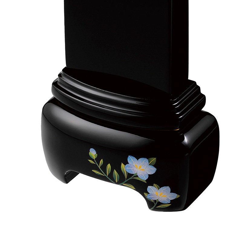 ![]() シンプルな丸みを帯びた優しい形状のお位牌に、 オリジナルの構図により描かれた会津蒔絵は艶やかな美しさと可憐な華やかさをプラスします。 |