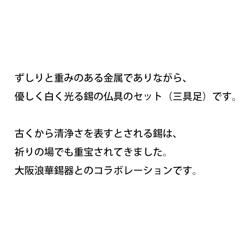 | サイズ | 花立:直径8.0×高さ7.0cm 火立:直径8.0×高さ2.4cm 香炉:直径8.0×高さ2.4cm 重量:500g |