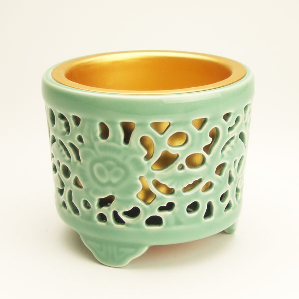 浄土真宗本願寺派(西)用 土香炉(青磁玉香炉)真宗下り藤紋入 2.5寸~7寸