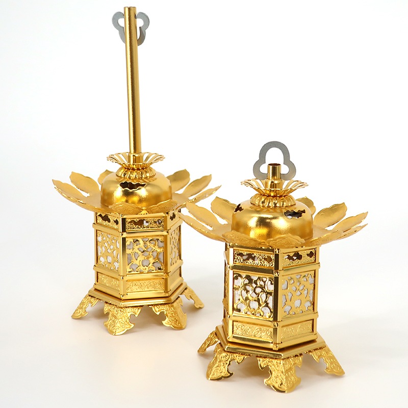 仏具 アルミ吊灯籠 神前灯籠 猫足 金色(一対入り)浄土真宗本願寺派(西)用 1.5寸~3.0寸(電装別売り)