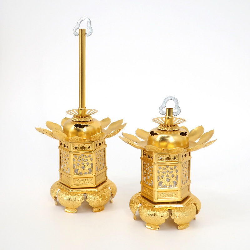 仏具 アルミ吊灯籠 神前灯籠 丁足 金色(一対入り)真宗大谷派(東)用 1.5寸~3.0寸(電装別売り)
