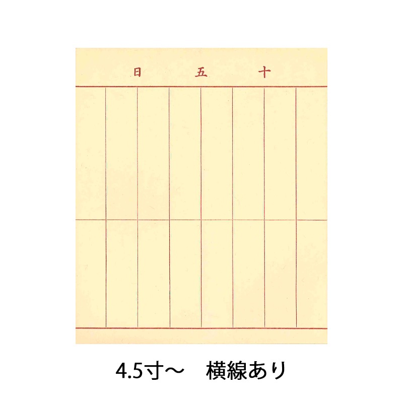 過去帳は、亡くなった人の戒名(法名)や俗名・死亡年月日などを記しておく記録帳です。 1日から31日の日付が各ページに入った日付入りと日付なしがございます。 4.0寸以下は横線なし、4.5寸以上は横線ありとなります。 |
