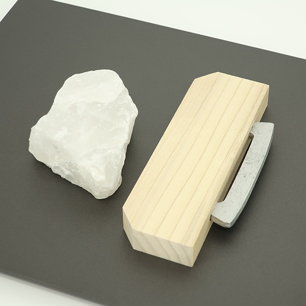 火打石と板付き鎌のセットです。 火打石で火花を起こすことは、身を清める、厄除け、魔よけの意味があるとされています。 火打石の由来 吉井本家の火打石は四百年の歴史と経験から精選された最高級品で水戸の黄門光圀公が特にその優れた品質を賞され、愛用されたと言う記録が残っています。 火打金は武田信玄の家臣が上州吉井の在に隠棲して刀鍛冶となった時、その妻が内職仕事に創り出したものが縁起となってこれが江戸で評判になり、火打金は吉井、吉井の火打金でなくては火が出ないと言われるようになり、以来、「上州吉井中之家女作」と刻印され、火打金の製法は連綿として、本家吉井の子孫に受け継がれ今日に伝えられております。 切り火は、不浄を絶ち、邪を払い、外出の時は無事安泰を祈る意味で用いられるものです。 この慣習は今でも神官、僧侶、修験者、信者や芸術家、芸能人、勝負事に関係ある職業の人、危険な業務に従事する人などの間で行われています。 特に神社や仏閣では、火打石は着火の道具としてまた御浄具として不可欠の道具とされています。 |
